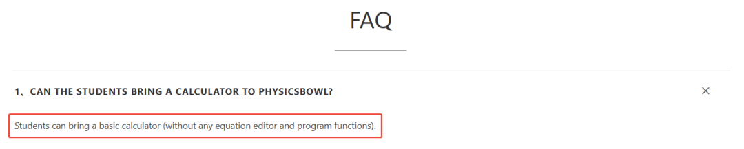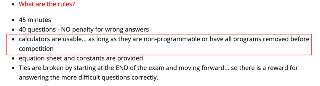经在主办方AAPT(美国物理教师协会)官网和阿斯丹官网查询确认,官网给的答复均是:学生可以携带基础计算器,但不得包含方程式编辑器和程序功能。
